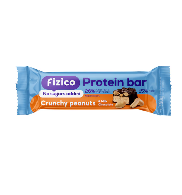 Baton bogat in proteine (26%) din lapte, zer si soia, fara zahar cu strat dublu de ciocolata cu lapte.