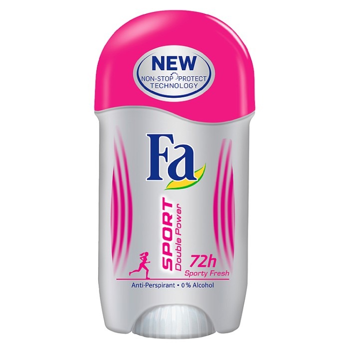 Fa Sport Double Power Sporty Fresh: Formula puternica este imbogatita cu Duo-Microcapsule si absoarbe transpiratia pentru protectie extra-puternica impotriva umezelii de sub brat: protectie deo de pana la 72 de ore!
