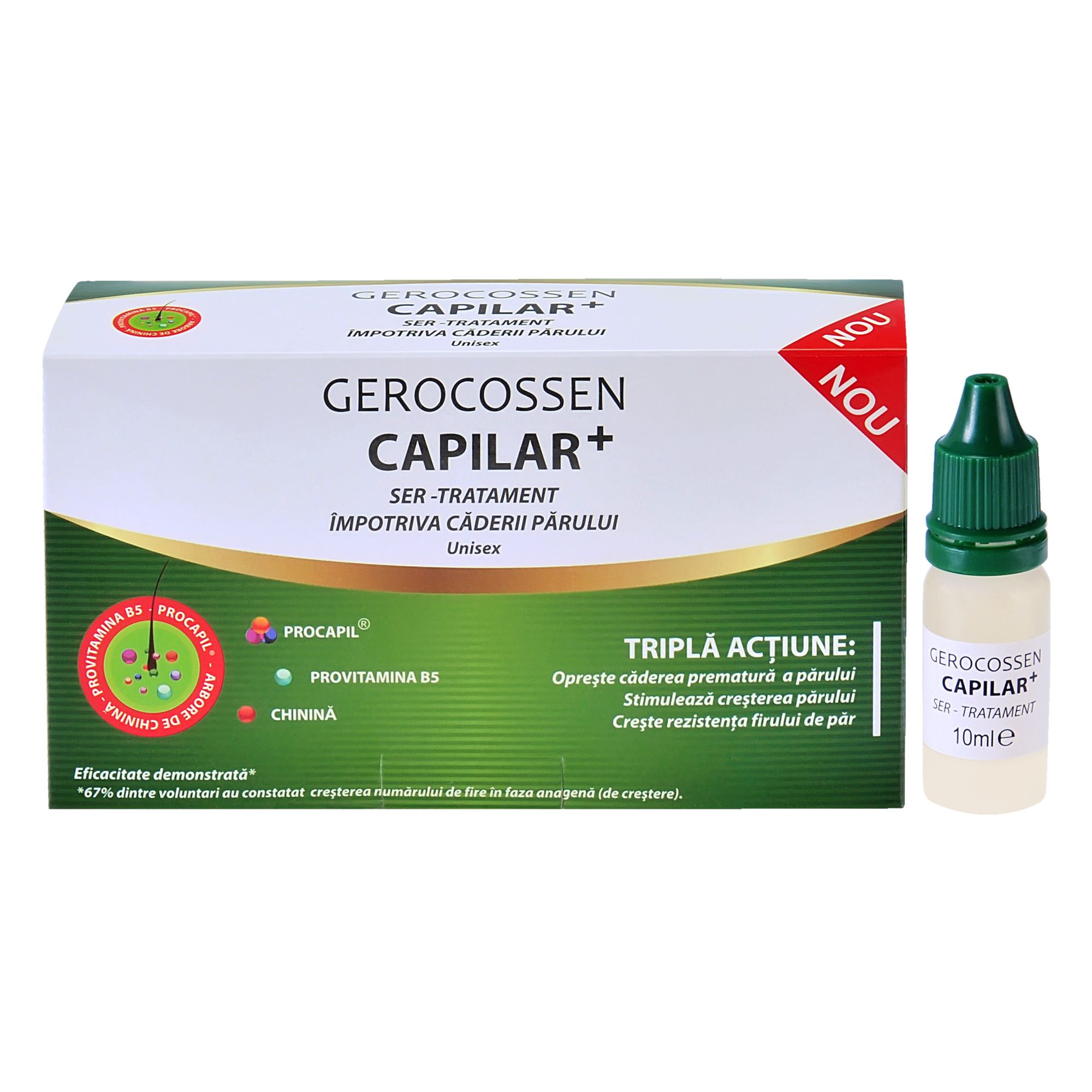 Serul concentrat este un tratament intensiv impotriva caderii parului, ce contine complexul activ brevetat PROCAPIL®, o combinatie de trei substante active (biotinyl tripeptide-1, apigenin, acid oleanolic) cu actiune specifica asupra celor 3 cauze ale alopeciei: micro-circulatie deficitara, atrofie foliculara datorata dihidrotestosteronului si imbatranirea foliculului.