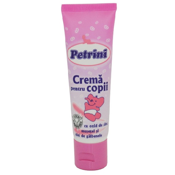 Pielea bebelusului tau este delicata si sensibila, supusa iritarii si deshidratarii. Crema pentru copii Petrini este un produs care vine in intampinarea acestor neajunsuri prin proprietatile sale deosebite de protectie indelungata, de hidratare eficienta si care asigura ingrijirea intensiva a pielii copilasului tau.